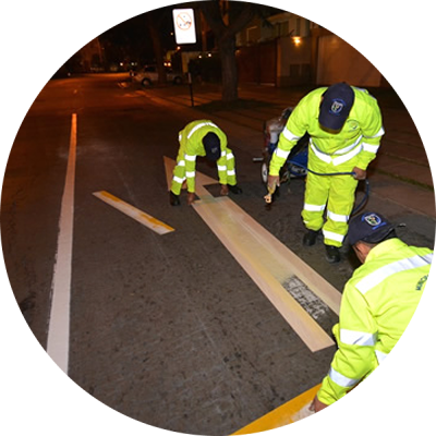 Señalización vial y de estacionamientos , flechas direccionales, pasos de cebra, lineas amarillas, circulo de seguridad y figura de discapacitado