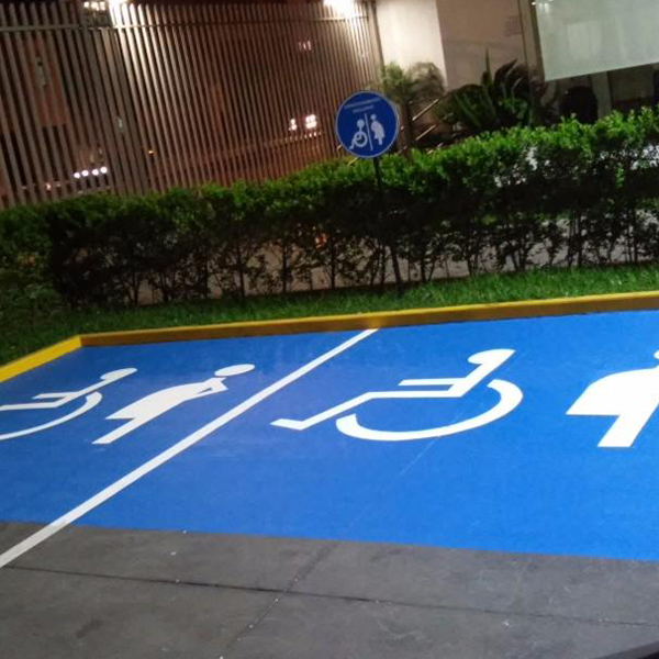 Señalización de estacionamientos, flechas direccionales, pasos de cebra, lineas amarillas, circulo de seguridad, figura de discapacitado.